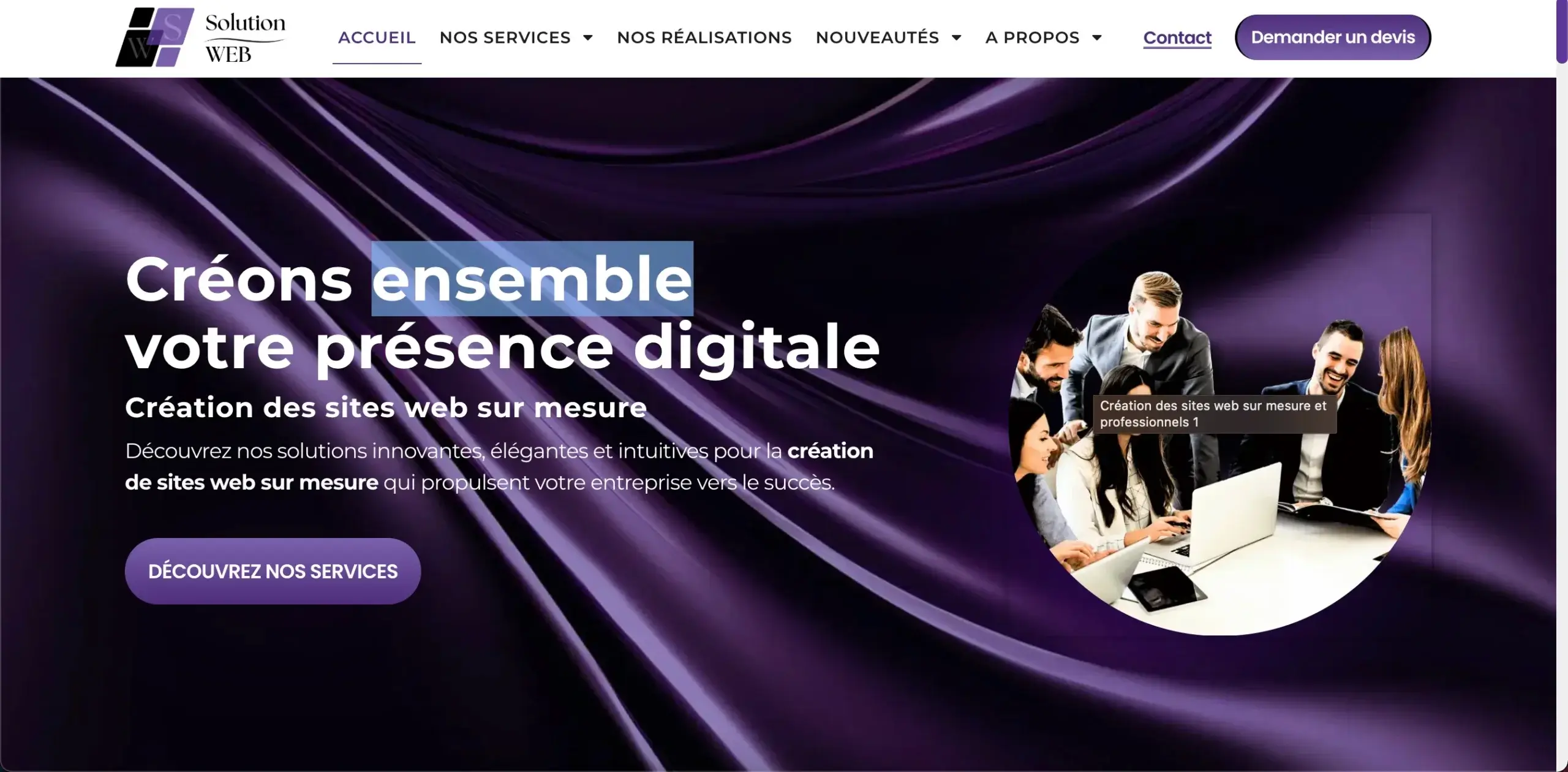 Site vitrine et portfolio de l’agence web Solution Web Pro.
